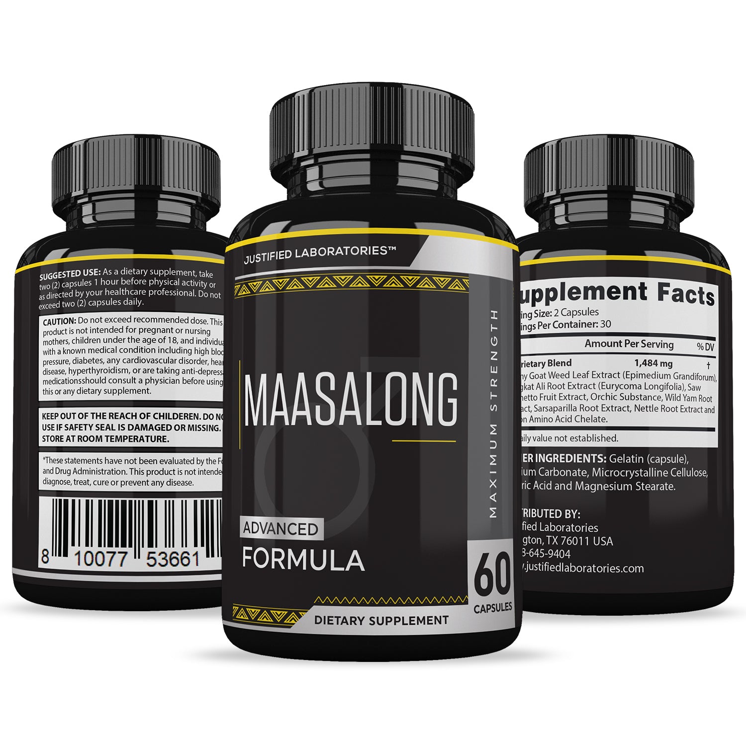 Is é Maasalong  forlíonadh sláinte na bhfear deiridh - foirmlithe chun cabhrú leat a bheith ar do dhícheall gach lá. Pacáilte le meascán cumhachtach comhábhar, seachadann ár bhforlíonadh 742mg i ngach capsule, rud a thugann 1484mg duit in aghaidh an riar!